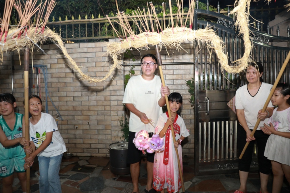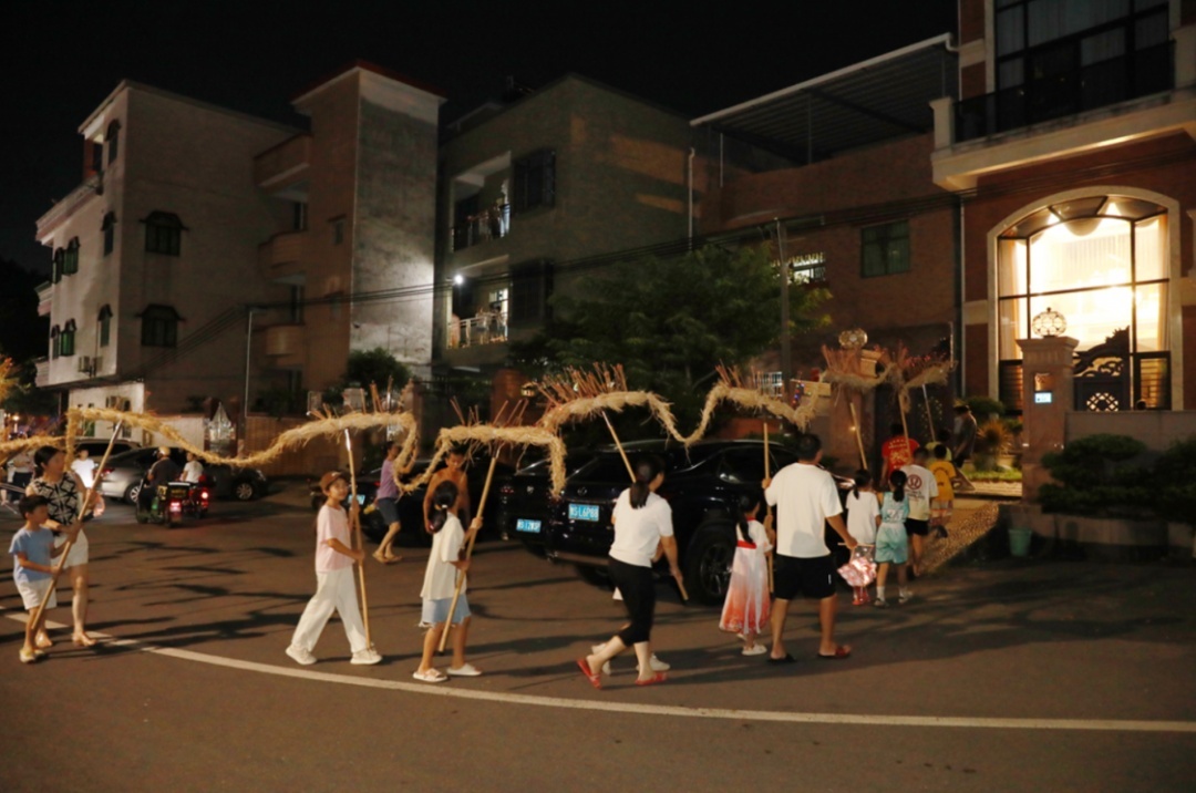 除了小朋友,不少年纪稍长的村民都觉得很有节日气氛,其中一个村民刘先生也带了自己家的小朋友到现场参加活动,他表示:“我们小时候就有舞草龙的传统,以前是连续舞3天,从八月十三一直舞到八月十五中秋节当晚。村里恢复这个传统之后,我觉得是让小朋友了解中秋传统一个很好的途径,特别有意义。”